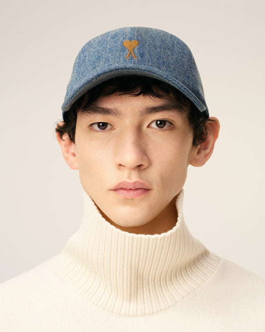 Worn denim cap. Unisex product "ami" signature adjustment buckle Ami Paris signature eyelets Cotton lining...