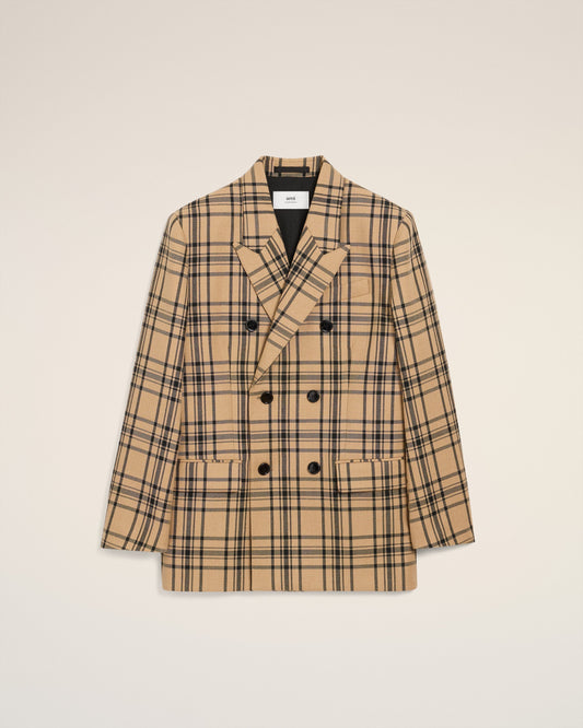 Double breasted jacket in checked wool gabardine. Loose fit Checked Notch collar Horn buttons 6...