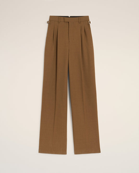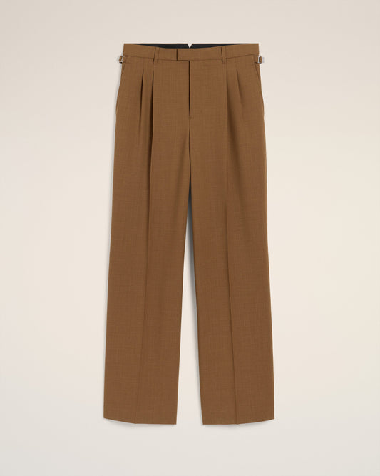 Large fit trousers with panel in wool tricotine. Wide fit Zipped front fly Horn...