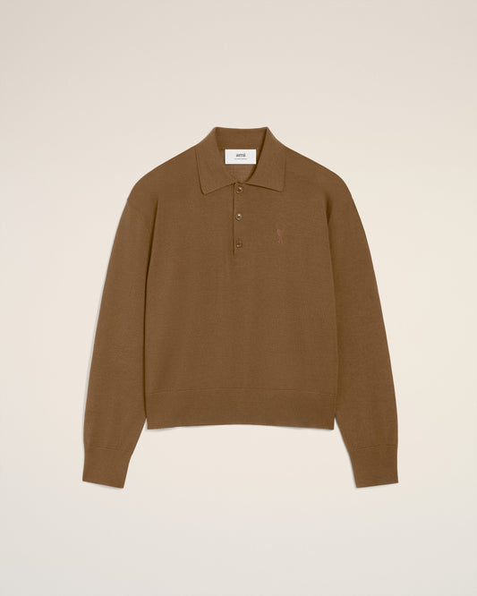 Polo in felted merino wool knit. Unisex product Manches longues "ami" engraved horn buttons Intarsia...