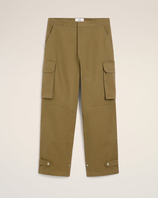 Cargo trousers in cotton gabardine. Classic waist Large leg Zipped fly Pockets with invisible...