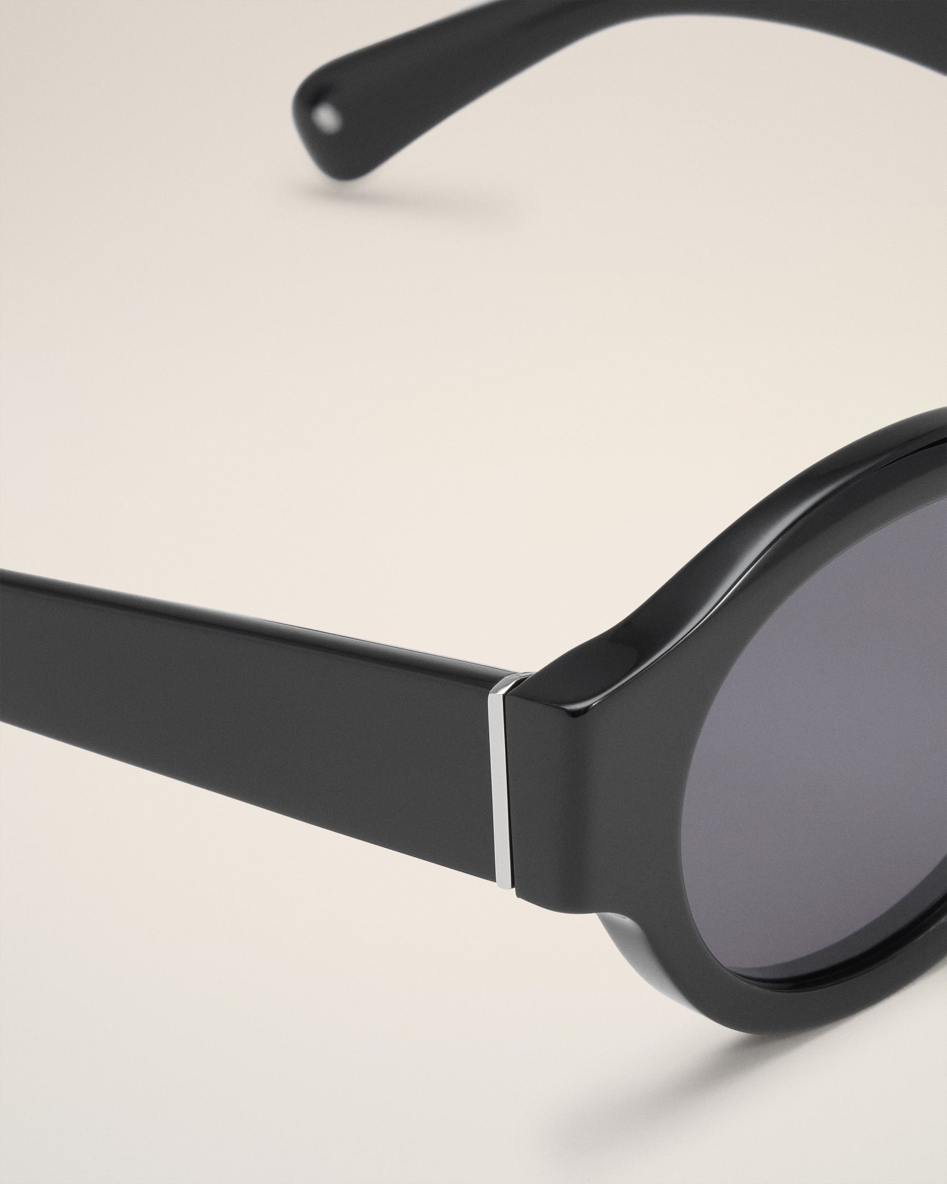 Sunglasses in acetate. Unisex product Black acetate frame and grey lens Metallic edges Maximum UV protection UV400 Lens category : 3 Black Ami de Coeur signature on temples Made in China (with love) REF: UGL517.AC0018.001