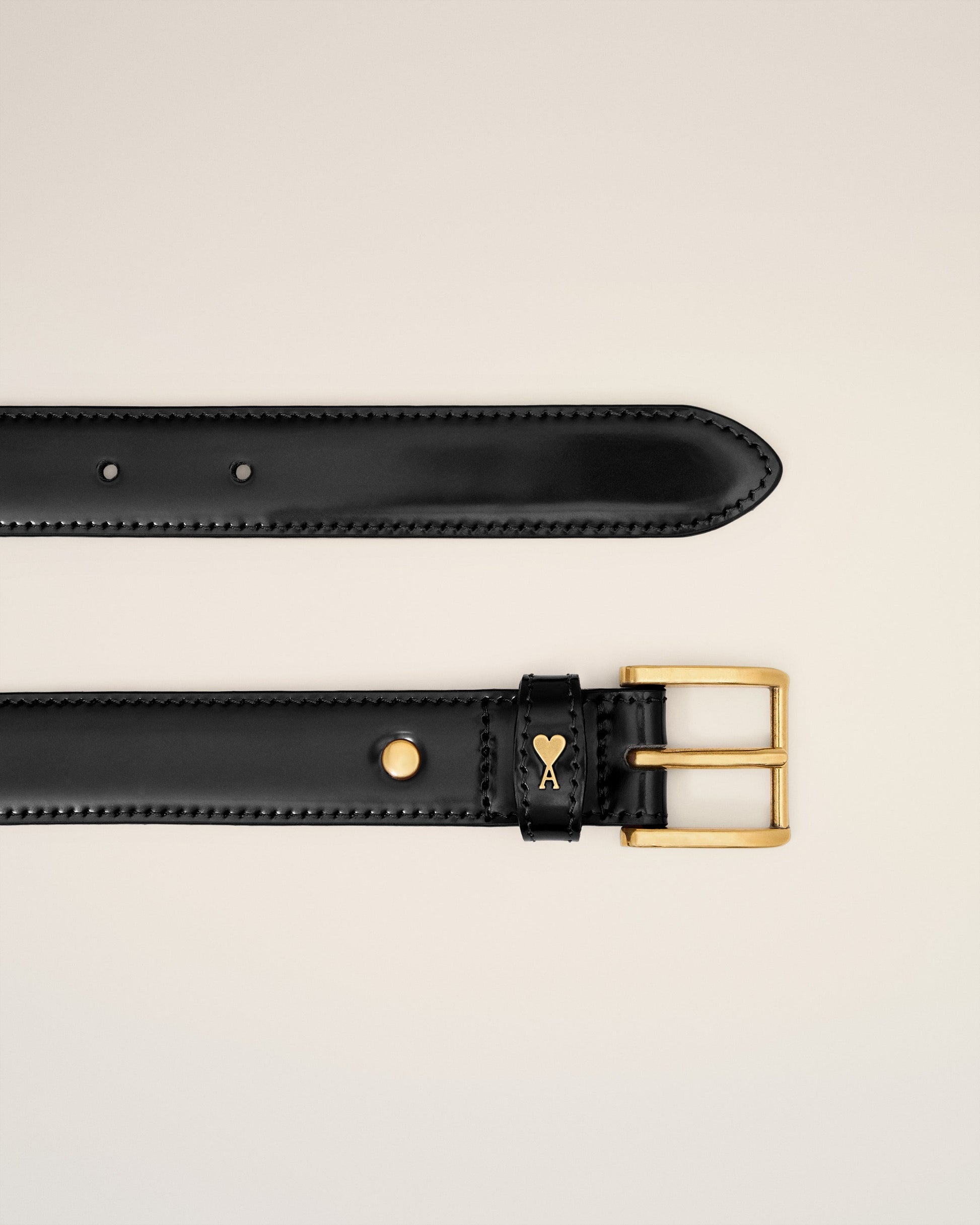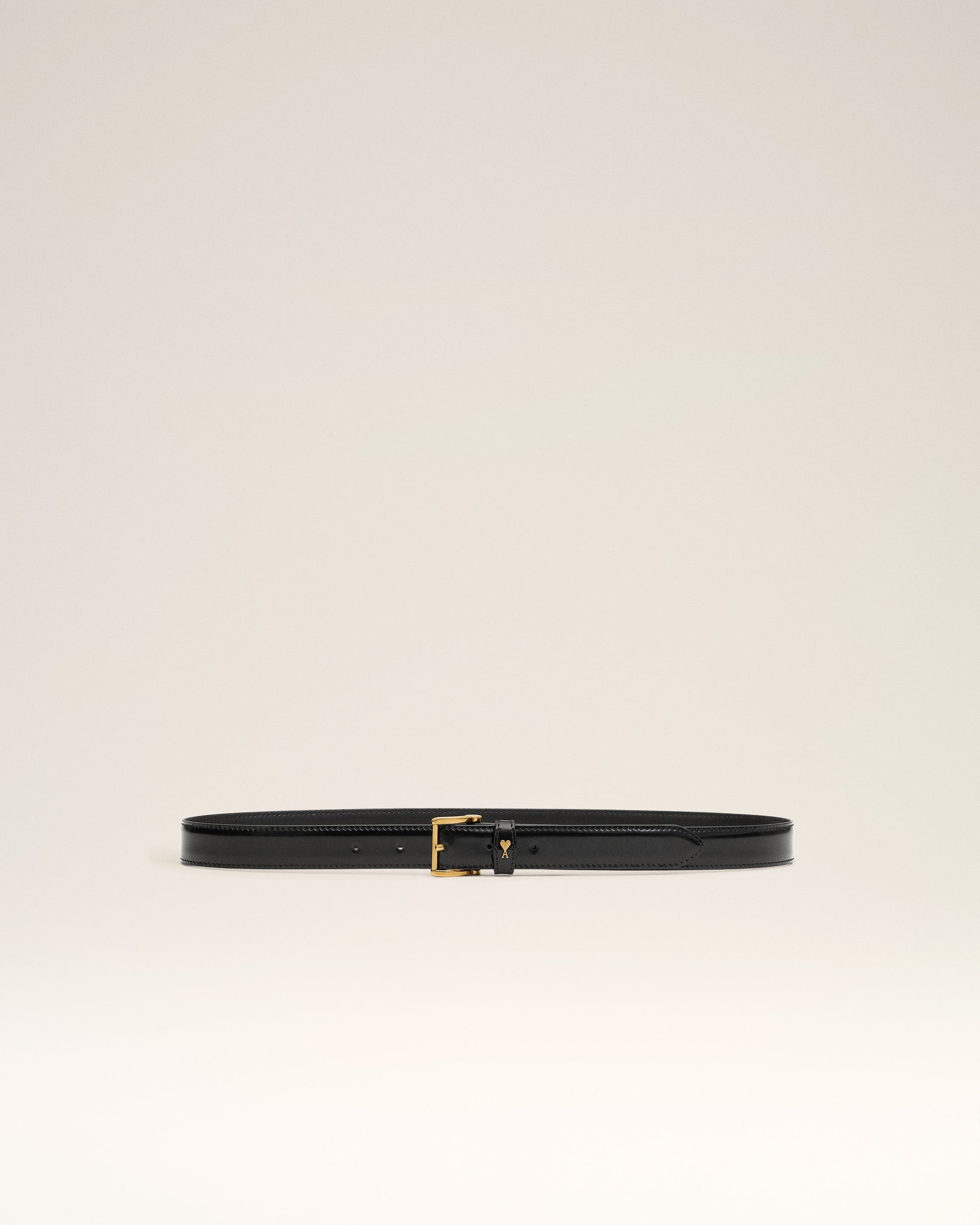 Paris Paris belt in glazed leather. Unisex product Metal buckle and Ami de Coeur stud in vibrated brass color Width: 25 mm Sizes: 75 / 85 / 95 / 105 Made in Spain (with love) REF: UBL029.AL0139.0015