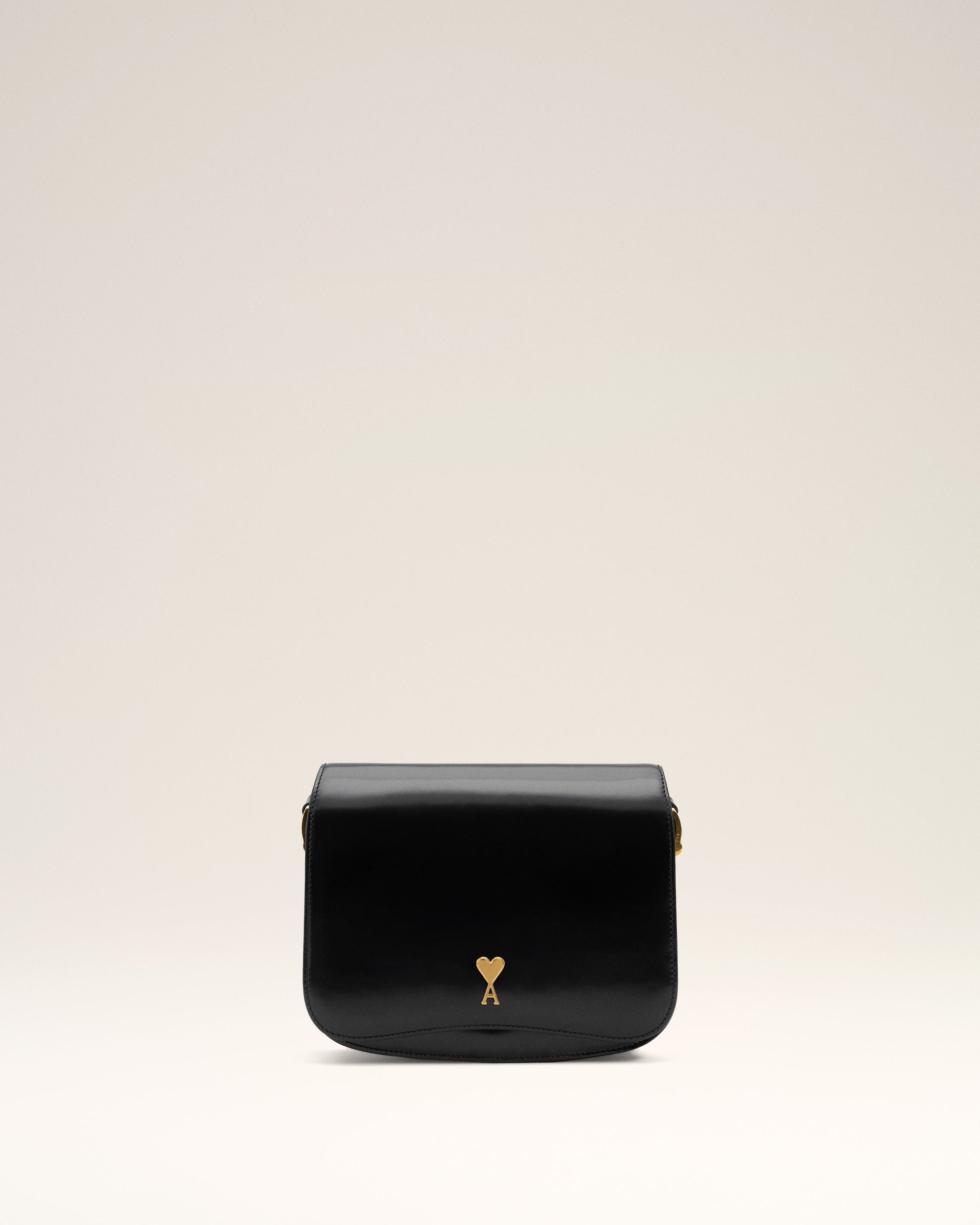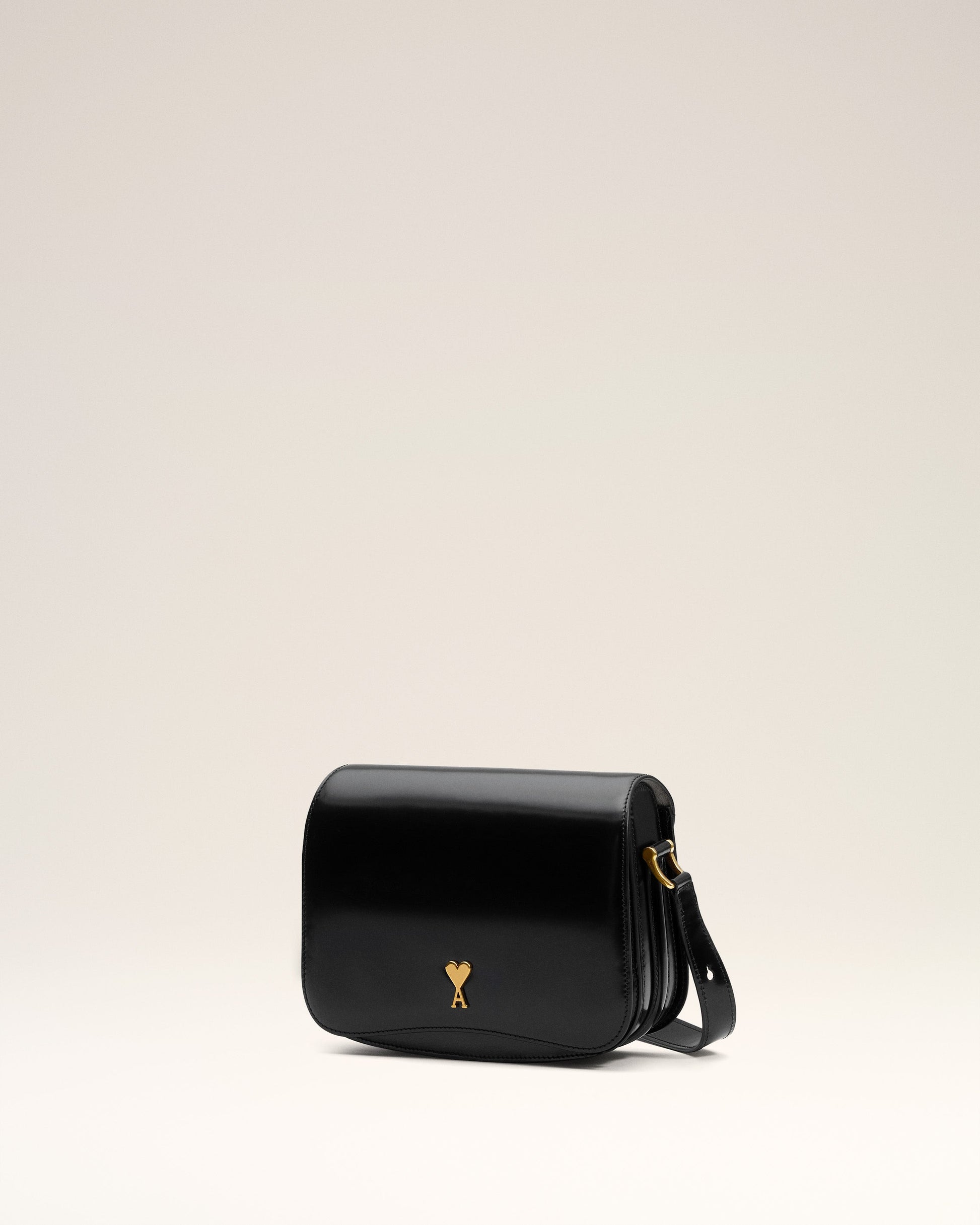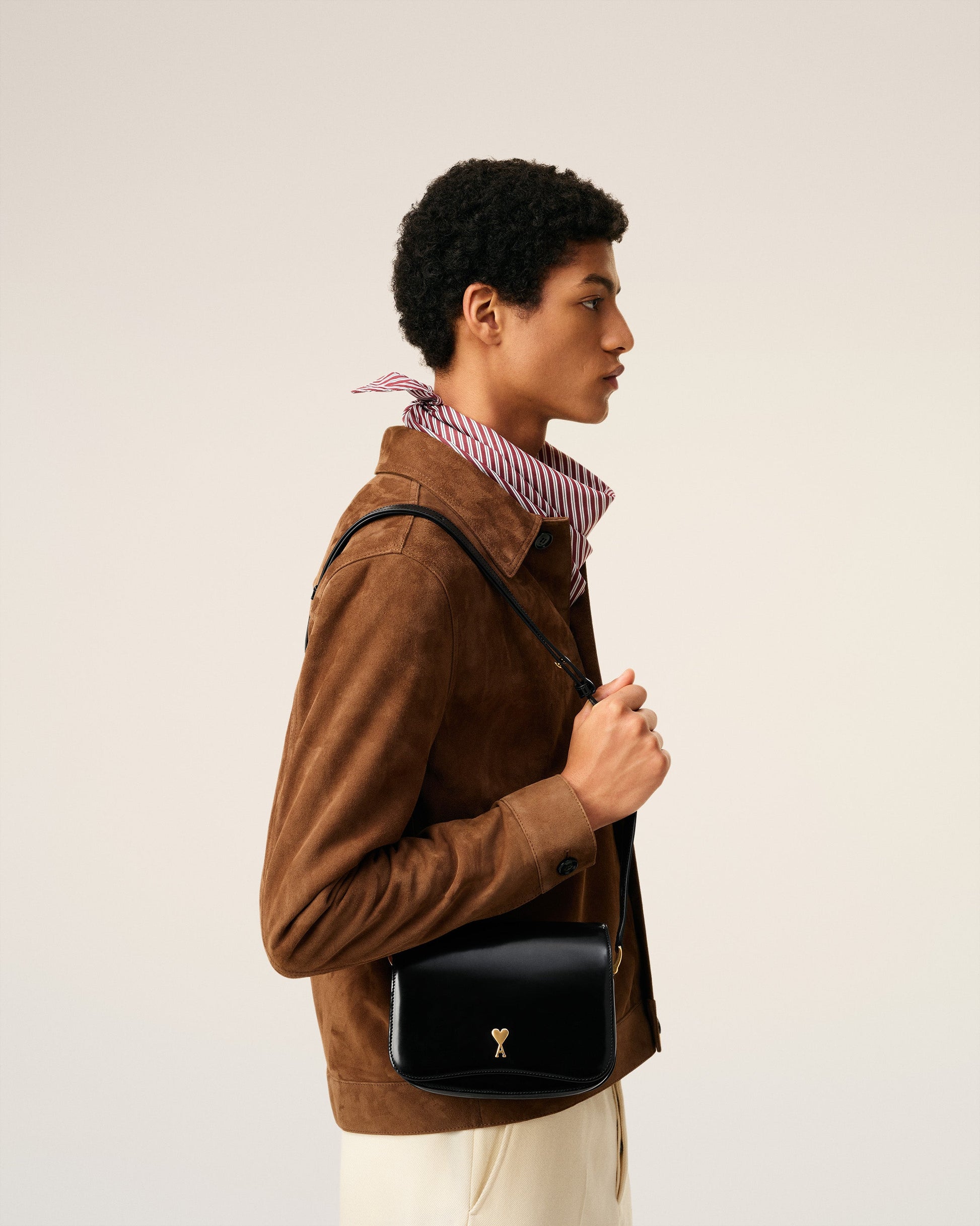 Paris Paris bag in glazed leather. Unisex product Calfskin Leather Adjustable leather strap, crossbody or shoulder carry Metal hardware in vibrated brass color One central compartment with a patched pocket and one front compartment Suede lambskin lining Ami de Coeur stud Size: 20 x 15 x 4.5 cm Made in Morocco (with love) REF: ULL717.AL0139.001