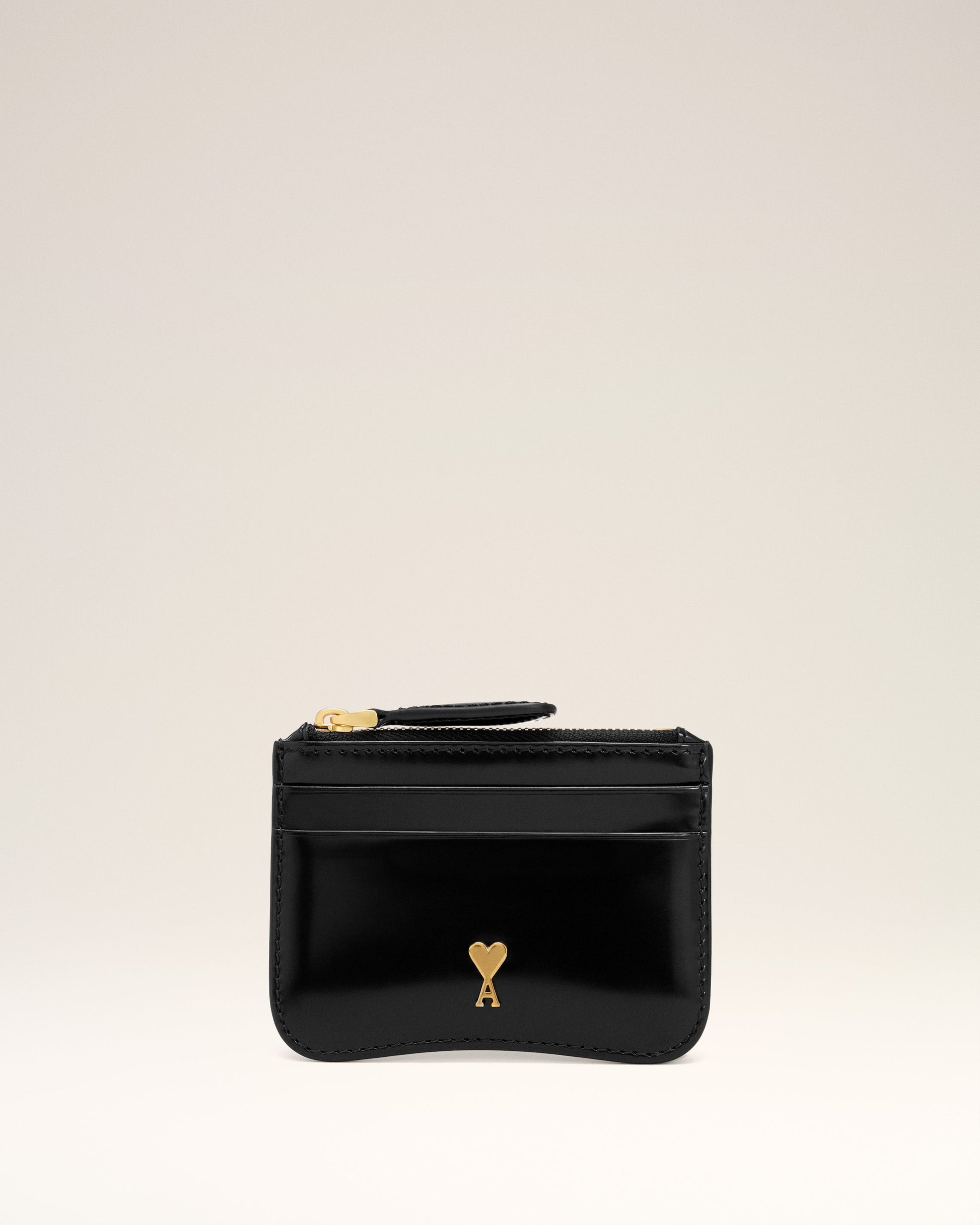 Paris Paris card zipped card holder in glazed leather. Unisex product Calfskin Metal hardware in vibrated brass color Two card compartments on each side One zipped coin pocket Cotton canvas lining Ami de Coeur stud Size: 10.5 x 7.5 cm Made in Morocco (with love) REF: USL707.AL0139.001