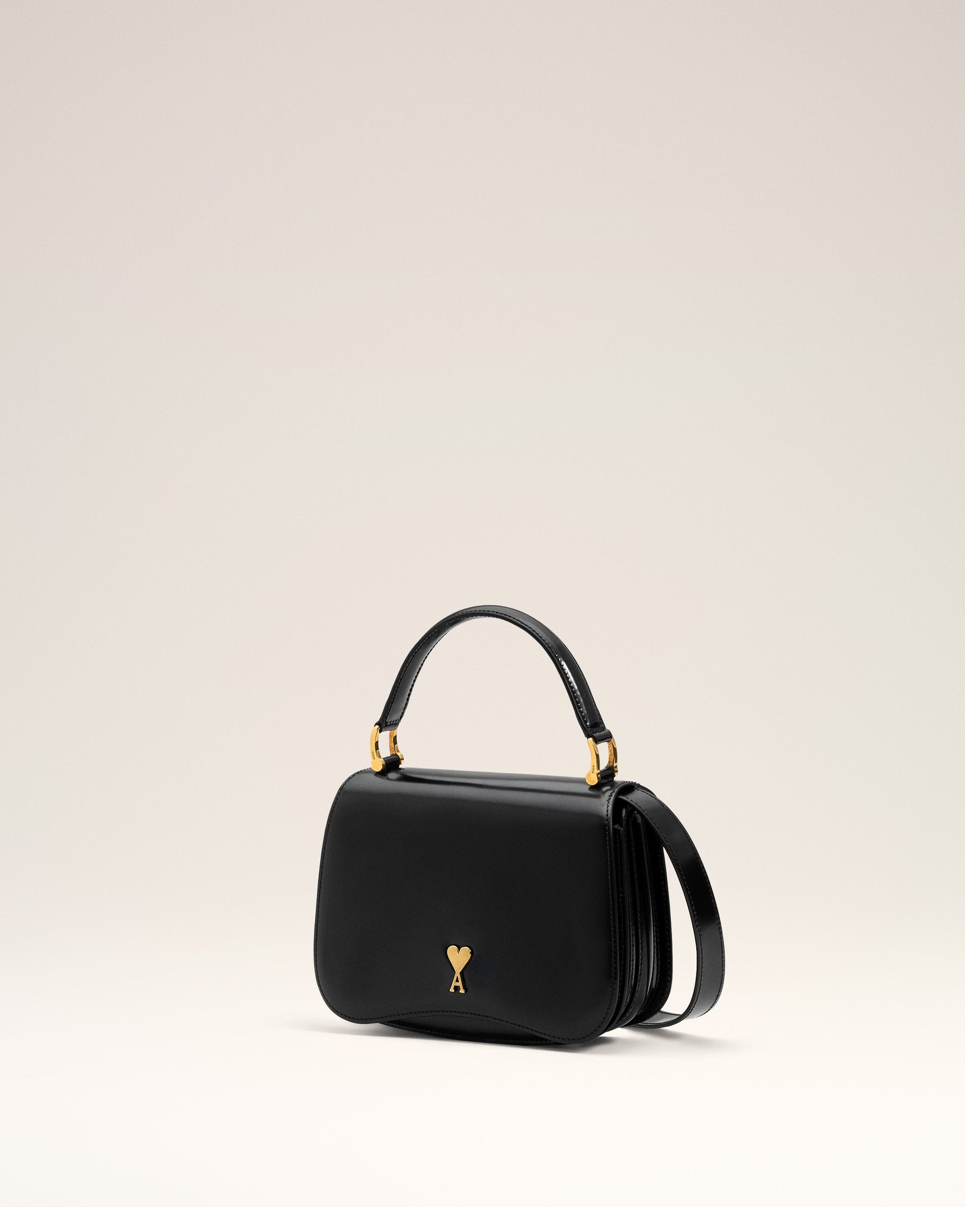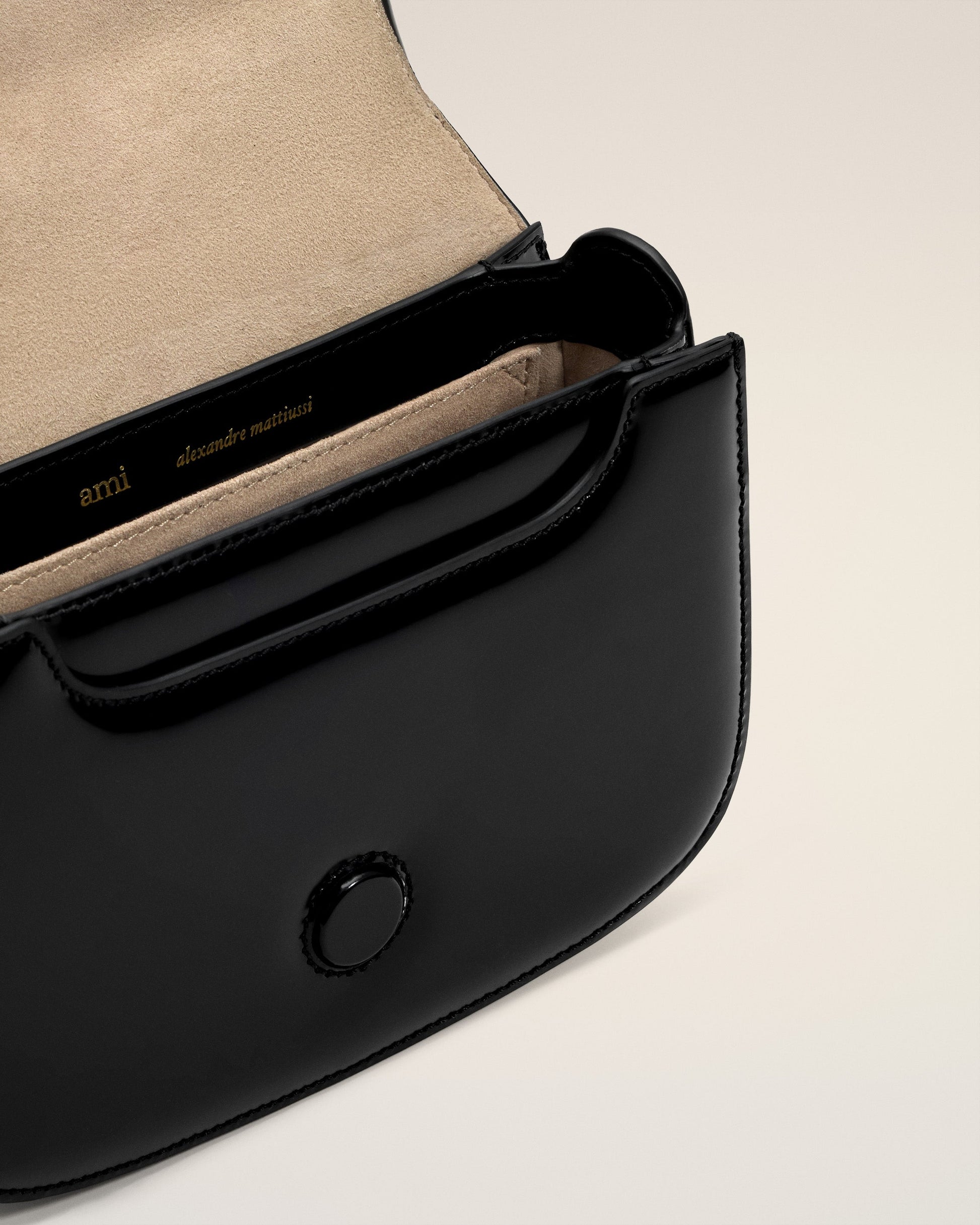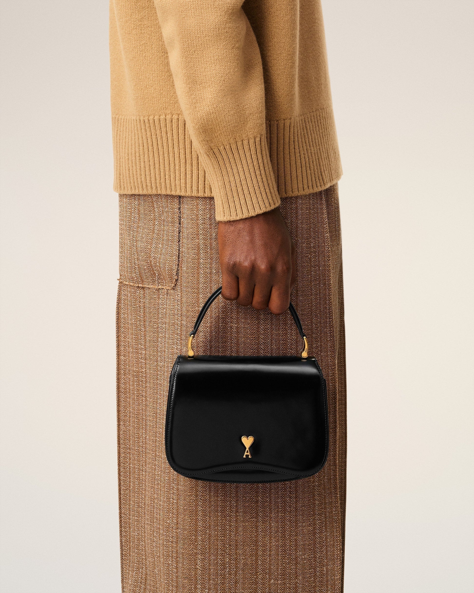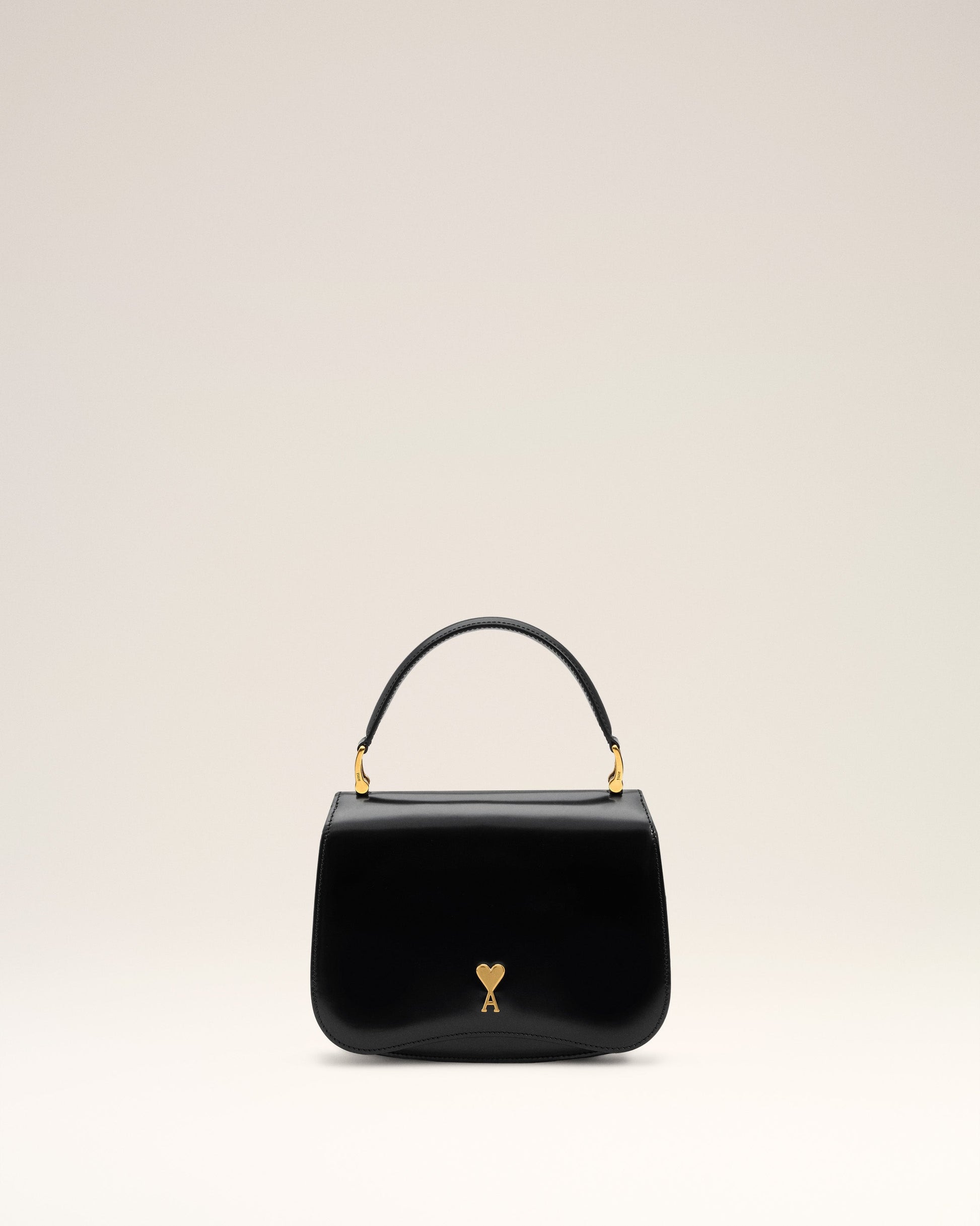 Top handle Paris Paris bag in glazed leather. Unisex product Calfskin Leather Adjustable and removable leather strap, crossbody or hand carry Metal hardware in vibrated brass color One central compartment with a patched pocket and one front compartment Suede lambskin lining Ami de Coeur stud Size: 19 x 13 x 4 cm Made in Morocco (with love) REF: ULL718.AL0139.001