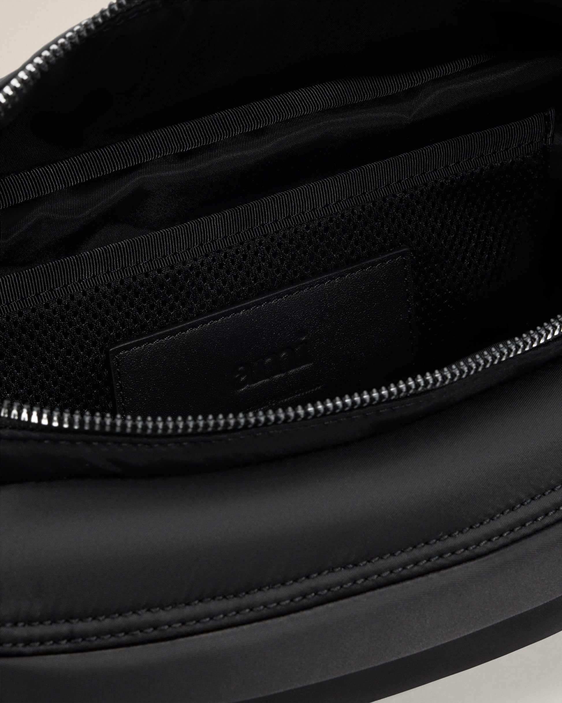 Marcel bumbag in padded nylon canvas. Unisex product Water repellent canvas nylon Adjustable strap in smooth leather, crossbody or shoulder carry Zipped main pocket with inside patched pocket in padded mesh Zipped pocket on the front Metal hardware in vibrated silver color Ami de Coeur patch in smooth leather Nylon canvas lining Details in smooth leather Size: 30 x 15 x 8 cm Made in China (with love) REF: ULL708.AW0001.001
