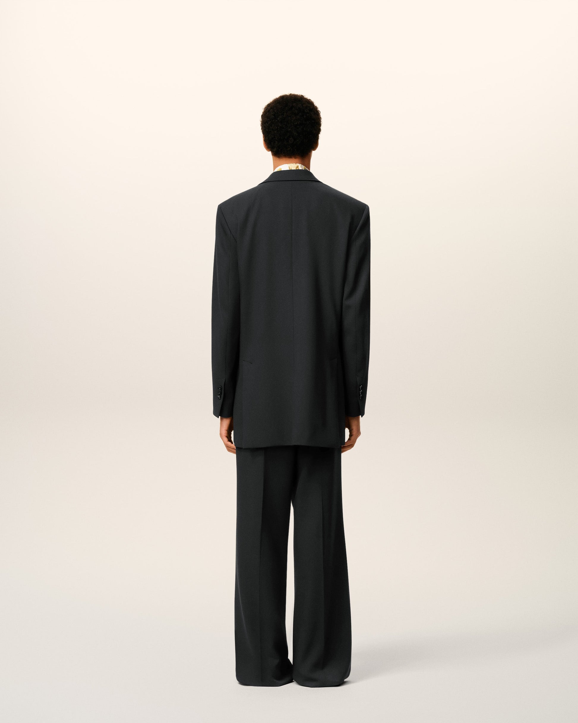 Two buttons jacket in wool tricotine. Boxy fit Notch collar Horn buttons 2 buttons single breasted 2 double piped pockets 1 chest piped pocket 3 inside pockets Buttoned bottom sleeves 2 back slits Fully lined AMF stitches on the collar, lapel and flap pockets 84 cm center back length (size 48) Made in Moldova (with love) REF: HBV001.WV0067.020